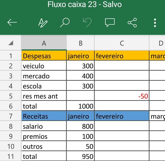 Nas primeiras colunas lance todas as previsões de despesas mês a mês até dezembro